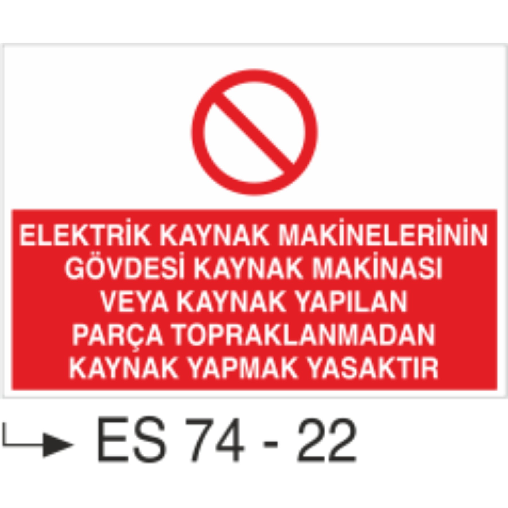Elektrik Kaynak Makinelerinin Kaynak Makinası Veya Kaynak Yapılan Parça Topraklanmadan Kaynak Yapmak Yasaktır - Uyarı Levhası