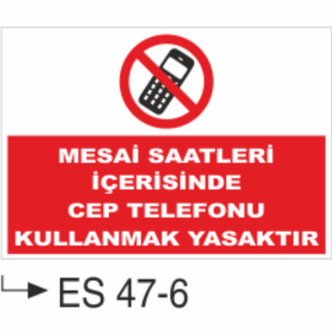 Mesai Saatleri İçerisinde Cep Telefonu Kullanmak Yasaktır-Uyarı Levhası