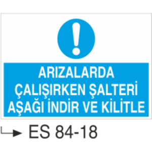 Arızalarda Çalışırken Şalteri Aşağı İndir Ve Kilitle- Uyarı Levhası